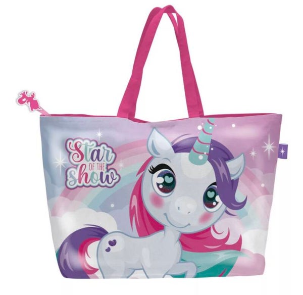 🦄🏖️ Sac de plage Licorne – Magie et couleurs au bord de l’eau ! Avec sa licorne scintillante et ses teintes arc-en-ciel, ce sac transforme chaque sortie en une aventure féerique. Spacieux et léger, il est parfait pour transporter serviettes, jouets, goûters ou petits trésors… tout en ajoutant une touche de rêve à la plage ou à la piscine.